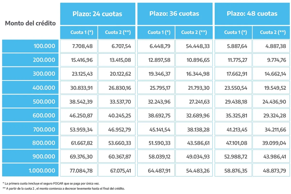 ANSES también dio a conocer los montos de las cuotas de los créditos. Vale recordar que los montos son iguales desde la segunda cuota y hasta el final, mientras que en el caso de la primera cuota, se pagan gastos administrativos, por eso es que esta ha sido más alta que el resto.