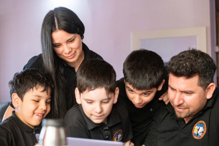 La docente Dahiana Tevez Moreno fue quien se desempeñó como directora de la escuela junto a su esposo, el docente David Ramírez y sus tres hijos, Bastian de 11 años, Nemias de 8 y Noah de 6 años, quienes hoy, luego de casi nueve meses viviendo en el continente blanco, están de regreso en Río Grande.