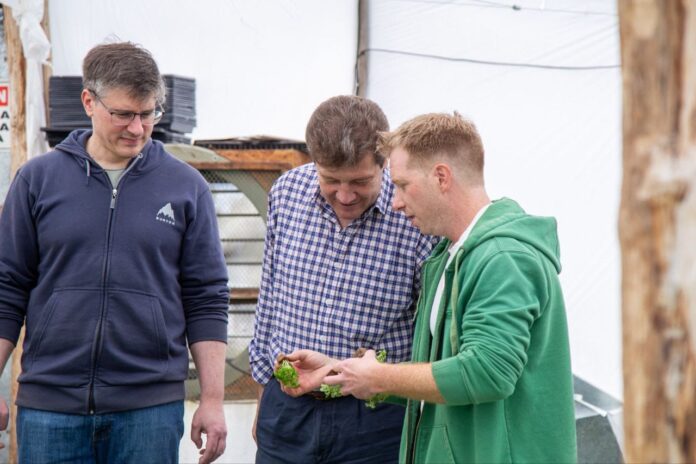 El Gobernador de la Provincia, Gustavo Melella, visitó las instalaciones de Verdenova Patagonia SRL, un joven emprendimiento radicado en Tolhuin que se dedica a la producción de verduras de hoja y flores comestibles mediante el uso de tecnología de punta para el control de cultivos.